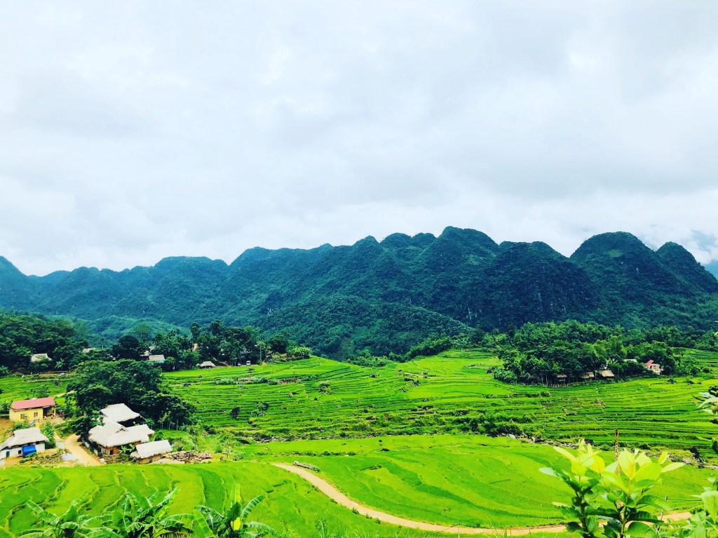 Pù Luông, không hẻo lánh như bản Hiêu. Pù Luông mênh mông hơn bản Hiêu. Phóng tầm mắt từ trên cao, nếu ra được Puluong retreat, cả cái thung lũng như 1 cái lòng chảo khổng lồ, có một cái rốn xoáy ở giữa. Xanh bất tận. Của rừng núi. Của bầu trời không có một chút mây. Cao vời vợi. và cũng gần đến mức bạn có cảm giác chạm được vào mây. Vào những ngày mưa tầm tã.