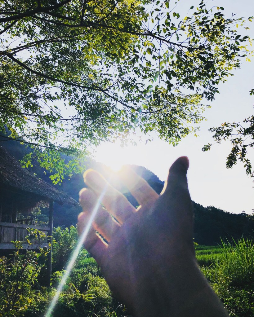 Bình minh ở cái bản nhỏ xíu này như một bức tranh thuỷ mặc. Ánh sáng vừa đủ chiếu qua từng kẽ lá, lúa mùa này chưa chín vàng ươm. Mới trỗ đồng đồng, thơm nức mũi.