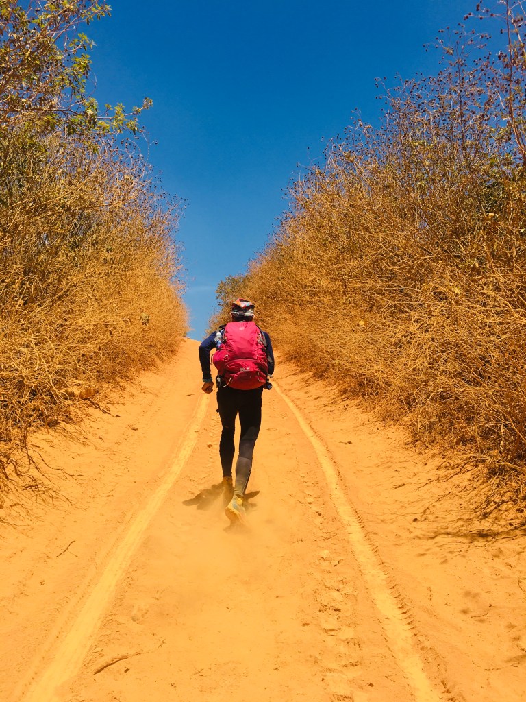 45p đi một mình lên dốc, giữa cái nắng như thiêu đốt. Không phải là trò chơi dễ dàng với mọi người. Ba lô gần 10kg, cứ nặng dần theo từng bước chân.