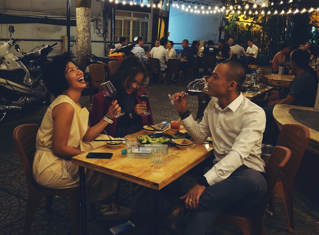 Ba đứa, quất hết mấy chai vang, ngồi xem chỉ tay chỉ chân, đốt điếu thuốc nhìn ra đường phố xe chạy qua lại, rồi nhìn nhau cười như mấy con điên.
