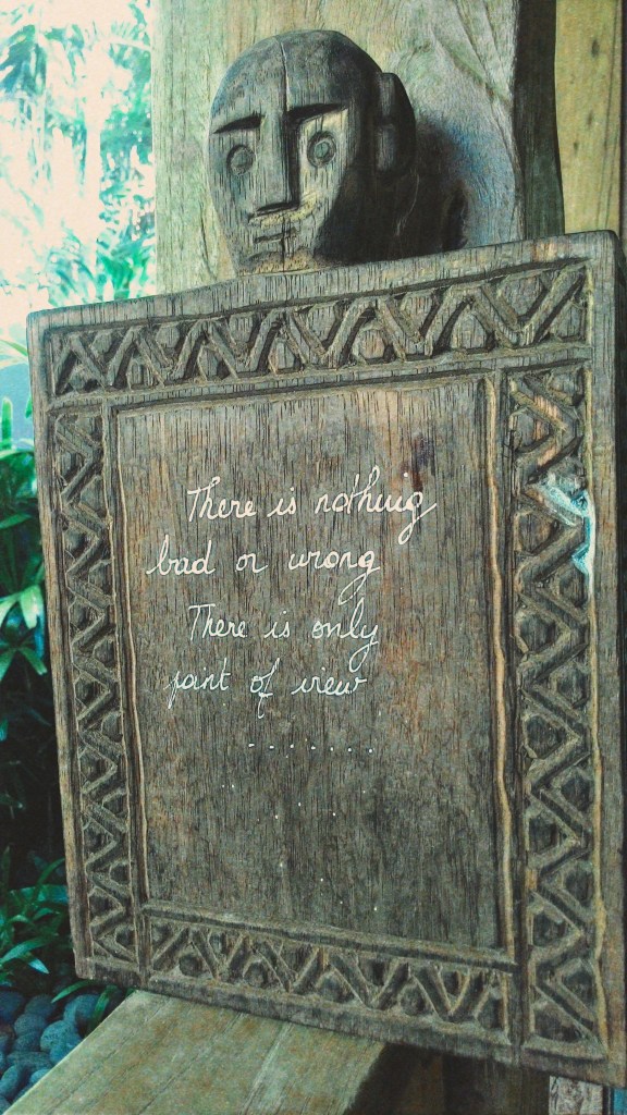 Ubud bình yên, nhất là mỗi buổi sáng, khi mấy bà thím đội từng giỏ, từng thúng hoa, dịu dàng, thành kính quỳ phục bên mấy gốc cây được cột một sợi dây đỏ, khấn váy gì đó, rồi đặt một thuyền hoa kết bằng lá ở dưới gốc. Rồi cứ nhịp nhàng, đi qua từng cây. Cả buổi sáng. Không ai nói ai một lời, chỉ thả mình vào lời khấn.