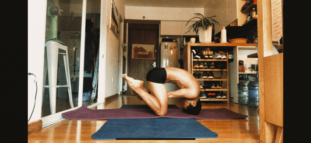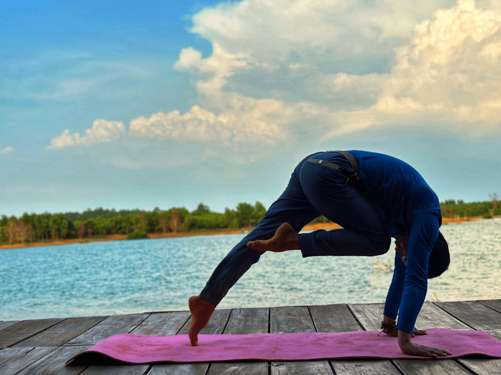 Đây là một biến thể của Mayurasana với việc nâng cao hơn, tư thế này thúc đẩy sự cân bằng và sức mạnh trên cánh tay, đồng thời cải thiện sức mạnh của cổ tay và cân bằng tổng thể.