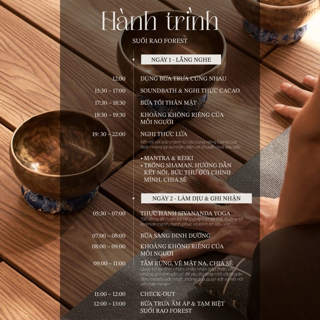 Những buổi tập sáng sớm giữa rừng, những lần ngồi cùng nhau bên ánh lửa, những giờ yoga không cần uốn dẻo, chỉ cần thực sự hiện diện.