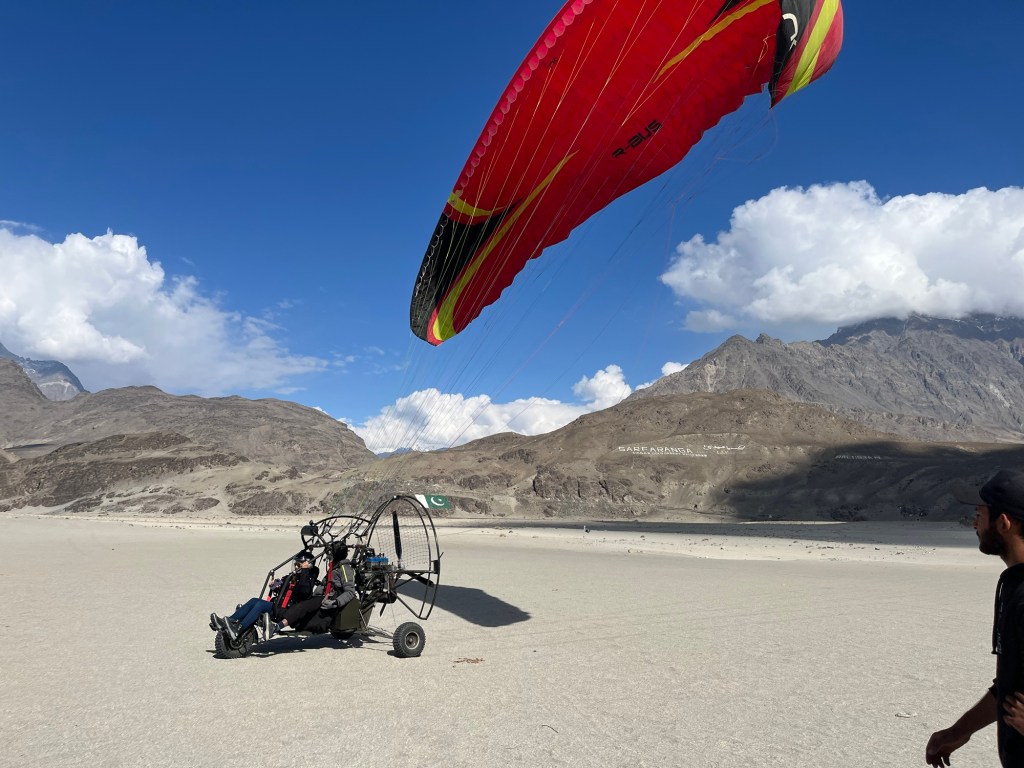 Paramotor: hình thức bay dù lượn có gắn động cơ cánh quạt phía sau lưng hoặc khung ghế, giúp người lái cất cánh và bay ở độ cao thấp đến trung bình. Ở Skardu (Pakistan), paramotor cho phép ngắm toàn cảnh thung lũng, sông băng và dãy Karakoram từ trên cao.