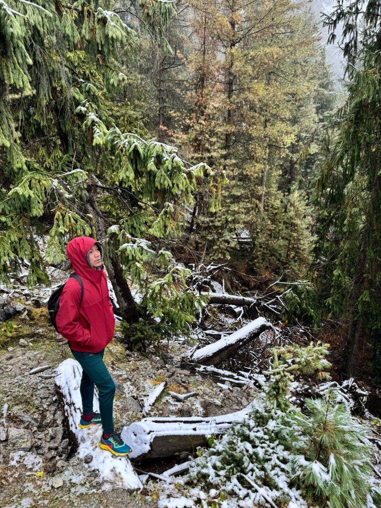 Sáng hôm sau, Fairy Meadows tỉnh dậy trong màu trắng thuần khiết. Băng phủ dày, bao trùm mọi thứ, từ mái nhà, cành thông đến từng viên đá. Khói bếp vờn qua ánh nắng mỏng. Tôi chạy chân sáo trên nền băng, nhặt một cành thông còn nguyên lớp băng trong suốt, cười như một đứa trẻ lần đầu chạm vào mùa đông.