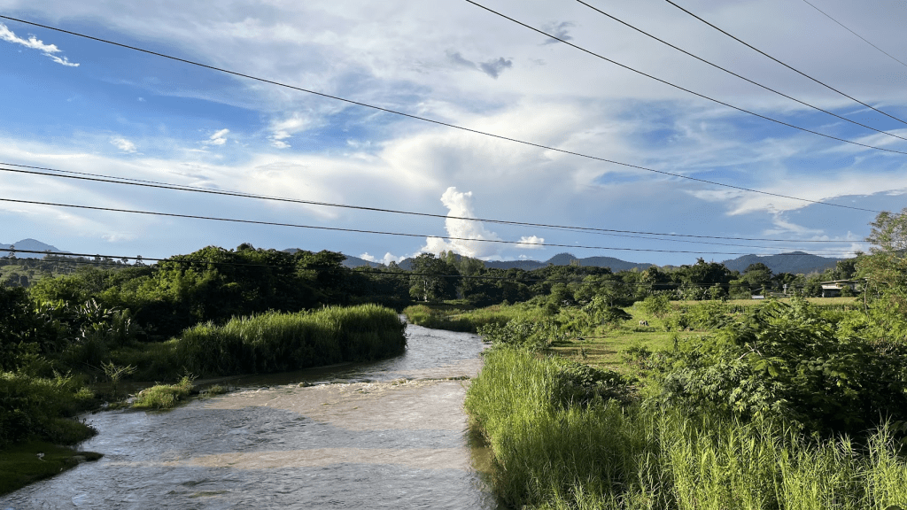 Buổi chiều, đi bộ ra khỏi trung tâm gần bốn cây số để ngắm hoàng hôn. Hai bên đường là đồng lúa, là nhà gỗ hai tầng, là tiếng heo kêu, tiếng chó sủa, tiếng người chào nhau bằng cái chắp tay và cái gật đầu nhẹ. Mùi mạ non. Mùi suối. Mùi phân bò. Thật thà. Giữa đường, có một bà chó vàng đi theo. Không mời. Không gọi. Nhưng cứ đi. Bị đuổi cũng không bỏ. Bị chó khác rượt vẫn đi. Theo đến tận cuối đường. Gần tám cây số. Một bạn đường không tên.
