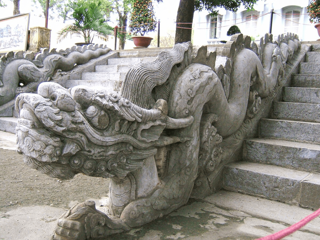 Naga gắn với nước, với ký ức của sông. Rồng gắn với trời, với hướng vươn lên. Khi hai lớp nghĩa gặp nhau trong một công trình, người bước vào không chỉ đi qua không gian. Họ đi qua một tiến trình tâm thức: rửa sạch, định tâm, rồi ngước nhìn.