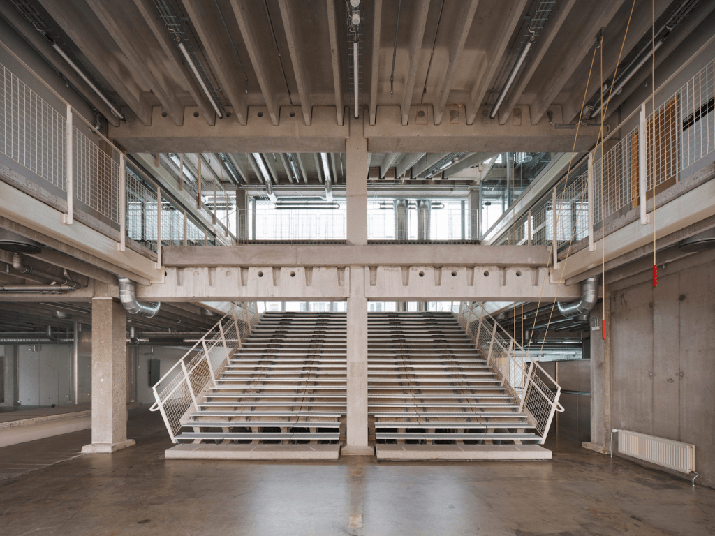 Hay đầy hoài niệm như cách Pihlmann Architects tại Đan Mạch đã cắt những sàn bê tông cũ của một nhà máy, lật ngược chúng lại để tạo thành cầu thang, giữ nguyên những vết tích sần sùi của thời gian như một chứng nhân lịch sử sống động.