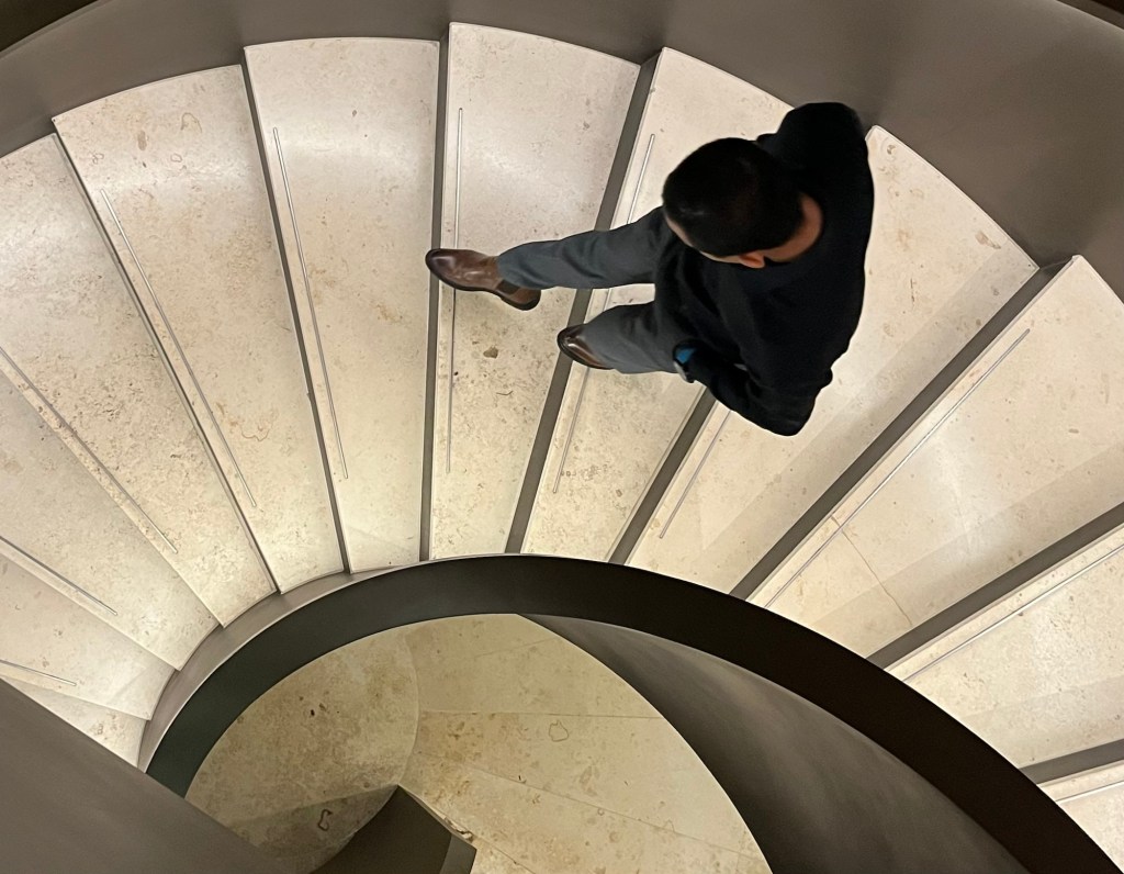 Cầu thang không chỉ nối các tầng lầu. Nó nối những bản thể khác nhau trong cùng một con người. Có những cuộc đối thoại quan trọng nhất không diễn ra trên bàn tiệc, mà diễn ra trong vài giây ngắn ngủi ta đứng lặng giữa lưng chừng cầu thang, tự hỏi mình đang đi lên hay đang đi xuống trong cuộc đời này?