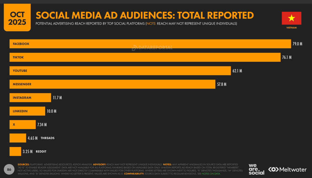 Mạng xã hội tại Việt Nam đã bước vào trạng thái “siêu đa số” với hơn 76 triệu danh tính người dùng. Tuy nhiên, sự phân hóa giữa các nền tảng đang trở nên rõ rệt hơn bao giờ hết: