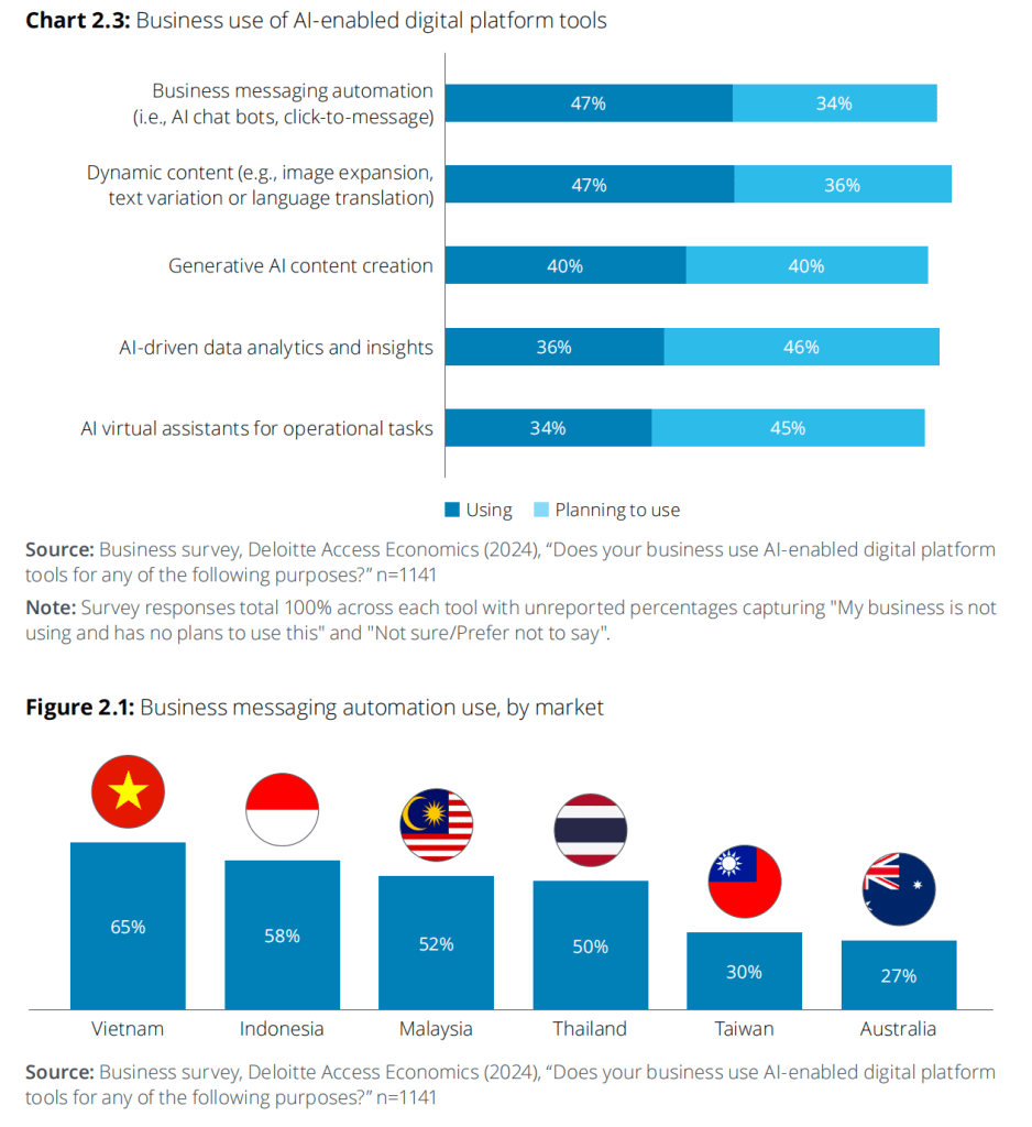 Nguồn tham khảo: AI for Business: APAC Trends in AI Platform Adoption, Deloitte & Meta, 2025: https://www.deloitte.com/southeast-asia/en/services/consulting/analysis/ai-business-apac-trends-platform-adoption.html