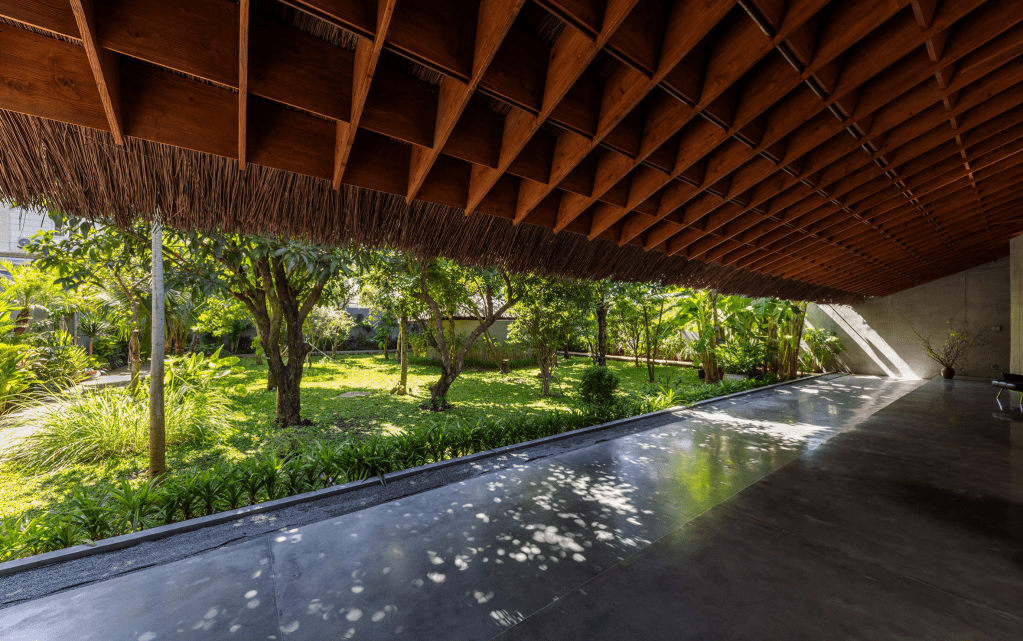 Ngồi ở đây, người ta khó phân biệt được mình đang ở trong nhà hay đang ngồi ngoài vườn. Chỉ biết rằng, nắng gió được tự do đi lại, hương thơm của cỏ cây len lỏi vào từng bữa cơm, và tiếng dế kêu đêm đêm trở thành bản nhạc nền quen thuộc. Cuộc sống không bị đóng khung trong những mét vuông sàn, mà nới rộng ra đến tận chân trời của khu vườn.