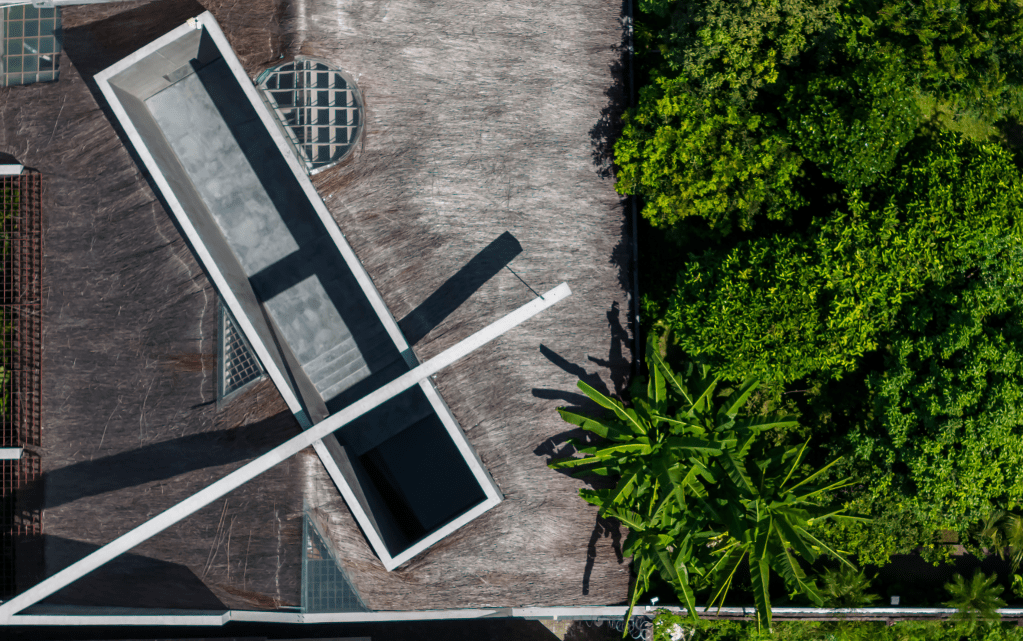 KIENTRUC O đã biến cái mái thành nhân vật chính. Dưới tán mái rộng lớn ấy, ranh giới giữa kiến trúc và bầu trời dường như được thu hẹp lại. Ngôi nhà không còn là những bức tường thẳng đứng chia cắt, mà trở thành một “cái chòi” trú ẩn tiện nghi giữa thiên nhiên. Cảm giác được sống dưới một hệ mái lớn luôn mang lại sự an tâm kỳ lạ, như thể mọi bão giông ngoài kia đều dừng lại trước hiên nhà.
