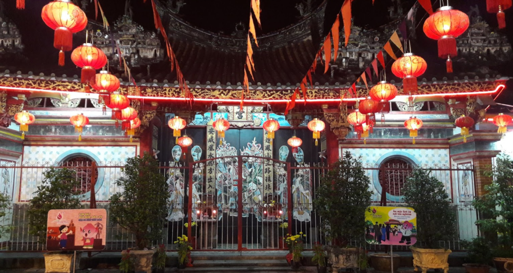 Đây là một công trình tiêu biểu cho lối kiến trúc đền miếu phong cách Quảng Đông, rực rỡ và đầy quyền uy.