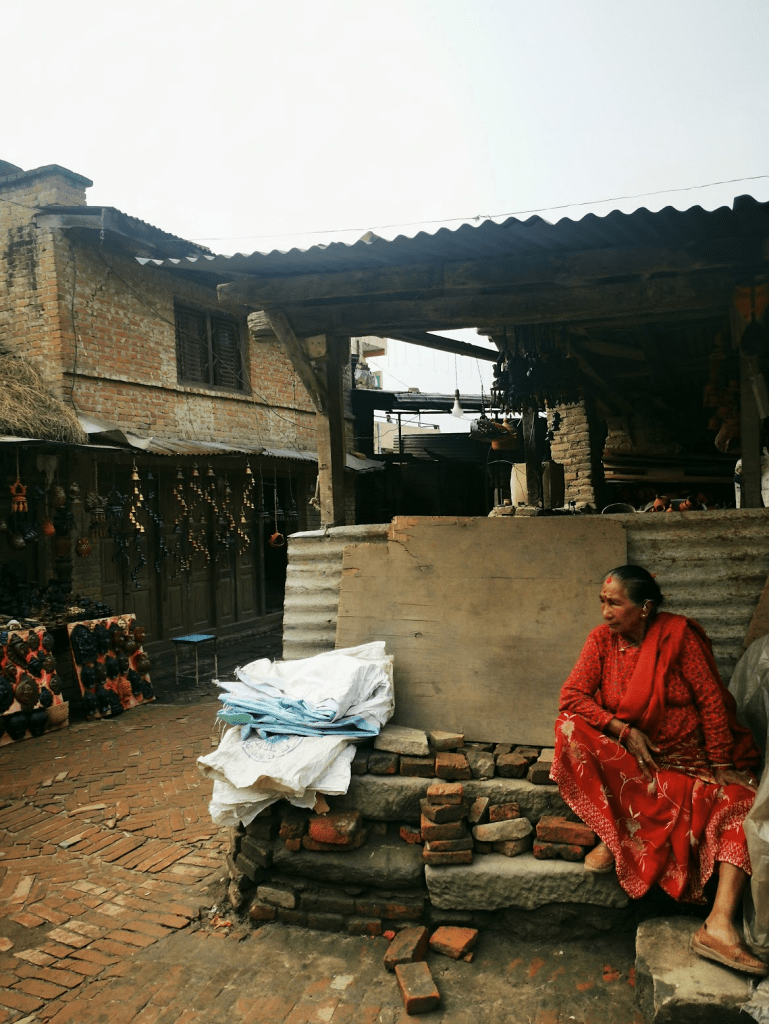 Bên góc quảng trường, những cụ già trong trang phục truyền thống ngồi lặng lẽ trên bậu đá, đôi mắt sâu thẳm quan sát dòng người qua lại. Họ giống như những nhân chứng sống của một thành phố không chịu già đi. Cuộc sống đường phố ở Bhaktapur diễn ra chậm rãi: một người phụ nữ phơi thóc trên tấm bạt xanh, những đứa trẻ chạy nhảy quanh các ngôi đền, và mùi bụi đất nồng nàn trong không gian hanh khô. Đây là nơi lý tưởng để đặt một chiếc ghế gỗ, gọi một ly trà Masala và ghi lại vào sổ tay những thanh âm của sự bền bỉ – tiếng bàn xoay gốm lạch cạch, tiếng chim bồ câu đập cánh trên mái đền, và tiếng thở dài bình thản của thời gian.