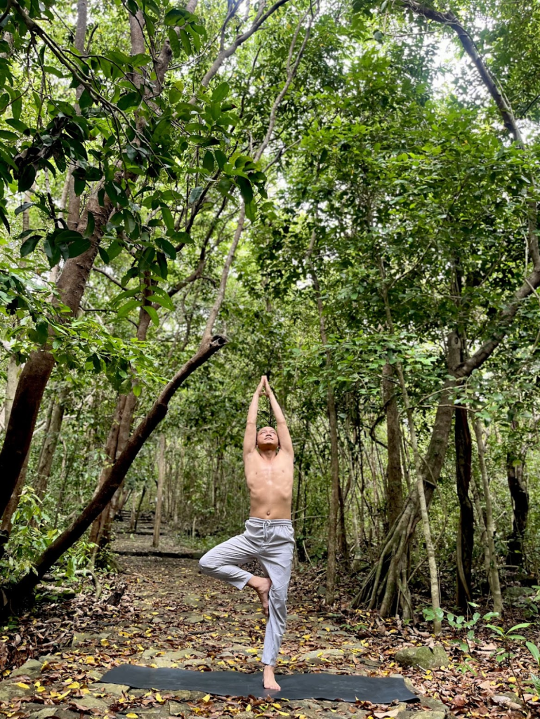 Có những ngày, chỉ việc đứng xòe năm ngón chân trên mặt thảm cũng mang lại một cảm giác nhọc nhằn. Ta thu một chân lên, chắp hai tay trước ngực, cố gắng găm ánh nhìn vào một điểm tĩnh trên bức tường phía trước. Rồi một cơn gió nhẹ lướt qua rèm cửa, một tạp âm từ còi xe ngoài phố vọng vào, hay chỉ là một dòng suy nghĩ bâng quơ vừa xẹt ngang đầu. Trục cơ thể lập tức rung lắc. Bàn chân trụ lảo đảo. Ta ngã nhào khỏi tư thế.