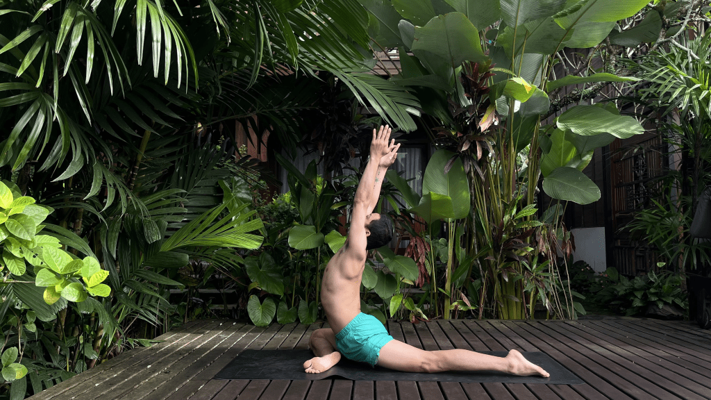 Mở nếp gấp hông, hít thở chậm.