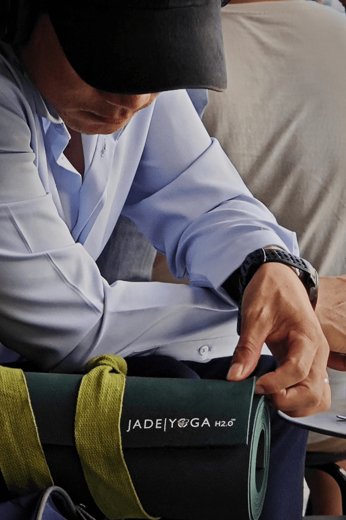 Jade Harmony không sinh ra để cuộn tròn nhét vào balo, rong ruổi hết trạm xe này đến sân bay nọ. Trọng lượng ấy giúp thảm nằm im lìm trên mặt sàn, không xê dịch dù chỉ một vệt nhỏ khi ta chuyển nhịp Vinyasa. Nó là mảnh vườn cố định góc phòng tập, là chốn an trú vững vàng để tôi trở về sau những chặng đường xa, chứ không phải là người lữ khách nhón gót đồng hành.