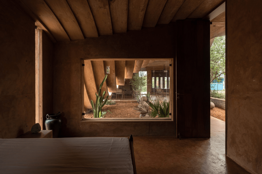Đứng trước cái nắng rát bỏng của vùng khí hậu nhiệt đới, Vaazh House không chọn cách đóng kín cửa để trốn tránh bằng máy lạnh. Ngôi nhà chọn cách mở lòng để đón nhận dòng chảy của tự nhiên. Triết lý rỗng được thực hiện một cách triệt để qua những khoảng sân trong và những ô cửa lớn thông tầng.